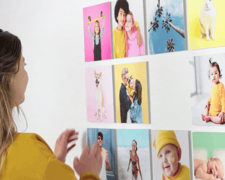 Elke vierkante tegel vertelt een verhaal, van dat eerste lachje tot de vakantie op het strand. Combineer meerdere tegels tot een speelse collage die echt iets zegt over jou en je gezin. En wil je later iets veranderen? Geen probleem. De herplakbare strip maakt het eenvoudig om je collage steeds opnieuw te herschikken.